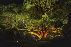 川棚のクスの森は国の天然記念物。見る人を圧倒する巨木です。