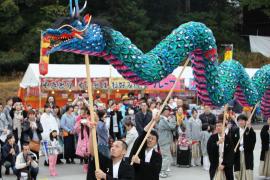 オープニングは、温泉の恵みに感謝して守護神青龍に捧げるせぎもちと青龍の舞い。